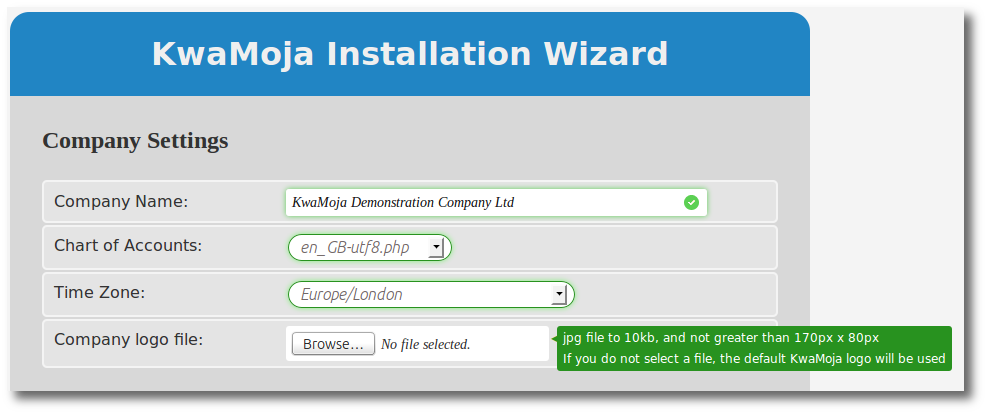 At this point having followed all the instructions above you should be able to log into the single company database you set up above. However, you may wish to add additional companies. If you system is set up such that the user account that is running your web-server is able to write to the KwaMoja directory then it is possible to enter the URL: